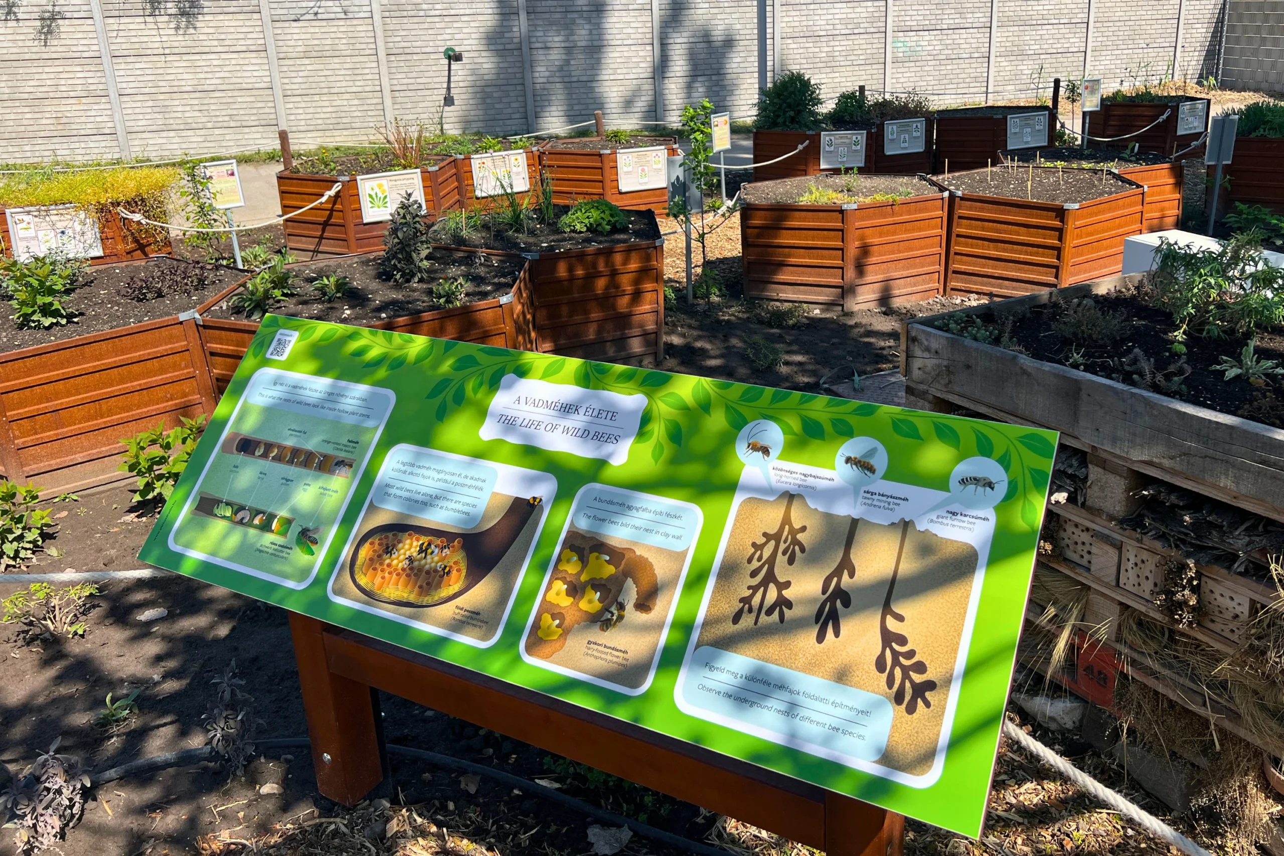 A másik dolog, ahol a cinikus megjegyzések előtt érdemes egy kicsit tájékozódni, azok a Beporzoona méhsejt alaprajzú magaságyásai, amelynek külső falai COR-TEN acélból készültek. A felületes szemlélő számára ezek egyszerűen rozsdás fémlemezek. A valóságban a COR-TEN acél, amelyet manapság az építőiparban is széles körben használnak, olyan acélfajta, amelynek felszínén rozsdaszínű, korrózióálló patinaréteg képződik, amely magát az acélt megvédi a további rozsdásodástól.